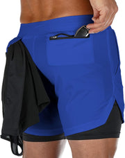 [2 in 1 GYM Shorts] -quick dry loose gym shorts, Double layer running shorts.