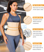 MEET THE NEEDS OF DIFFERENT BODY SIZES: The waist trainer for women with lower belly fat has adjustable rows of buttons and a zipper, allowing for customization to different body sizes and helping to shape the perfect waistline. Our weight loss belt can accommodate any body type, providing unique comfort.