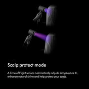 Scalp protect mode: A Time of Flight sensor automatically adjusts temperature to maintain an optimal target temperature at the scalp