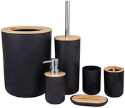 Bamboo Wooden Bathroom Accessories Set, 6 Pcs Set Toilet Brush, Soap Dispenser, Waste Bin, Toothbrush Holder, Soap Dish Cup Set Can Be Used Repeatedly