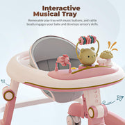 🎵 Musical Infant Walker Tray : Features a removable tray with musical buttons, beads, and animal characters, offering endless fun while developing motor and auditory skills—perfect for infants walker use.