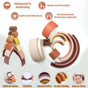 SAFE BUILDING BLOCKS - This wooden rainbow stacking game made out of a really pretty wood, no hase bad smell, very smooth and soft to the touch, won't hurt kids' skin. This rainbow nesting puzzle is an open ended and creative toy to make kids experience endless fun while stacking and playing.