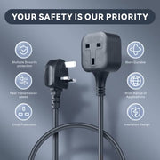 Baytion Extension Lead,1 Way Extension Cord 3M with UK 3 Pin Plug Power Strip,Tough and Fireproof Single Extension Socket for Home&Office(Black) (3M)