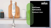 Braun Household MultiQuick 5 Hand Blender, PowerBell Plus Technology, Splash Control, 21 speed, Whisk, Ergonomic Shape, Comfortable Soft Grip, 1000 Watts, 500 ml Chopper - MQ 5235