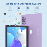 C idea10.1 Inches Tablet,Android 14 Tab,5G Tablet Dual SIM 8GB RAM 1TB ROM,10000mAh Battery With Bluetooth Keyboard,Mouse and Speaker CM8200plus(Purple)