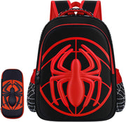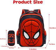 Chielor Kids School Backpack, 15in Cartoon Spider Schoolbag with Pencil Case 3D Waterproof Book Bag for Elementary Boys Large Capacity Back to School Supplies Birthday