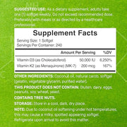 DEAL SUPPLEMENT Vitamin D3 50,000 IU + K2 MK7 200 mcg,240 Softgels | Virgin Coconut Oil, Max Strength Vitamin D & K, Promotes Heart, Bone, & Teeth Health – One Softgel Weekly, Easy to Swallow