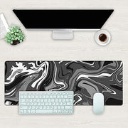 Abstract Black White Ink Liquid Waves Desk Mat Extended Gaming Mouse Pad Large