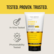 Dr. Sheth's Sunscreen SPF 50 Cream with Ceramide & Vitamin C for Oily, Sensitive, Dry Skin | For Intense Hydration | Non Greasy, Quick Absorbing | Zero White Cast | PA+++ | For Women & Men | 50g