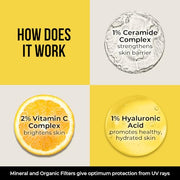 Dr. Sheth’s Ceramide & Vitamin C Sunscreen | (vegan) with with SPF 50 PA+++ |A non-greasy, hydrating sunscreen for sensitive skin |Strengthens skin barrier |Protecting your skin from the harmful UV rays and preventing sun damage—is just one of the many benefits of the humble sunscreen. Did you know that if you are to religiously use your SPF, it also helps prevent fine lines & wrinkles? Enter Dr. Sheth’s Ceramide & Vitamin C Sunscreen, with SPF 50, specially formulated for sensitive Indian skin that comes with broad-spectrum protection from UV Rays. It not only acts as a shield against pollution but also protects the skin from the damaging blue light. Indian skin tends to have a weak barrier, but thanks to the ceramides in the formulation, it works to restore the barrier. Vitamin C in the formulation helps repair skin damage by preventing micro-pigmentation. Hyaluronic acid moisturizes and gives the sunscreen a nourishing yet non-sticky texture.