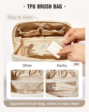 Easier Access: The flat design allows the bag to open wide, giving you a full view of all your makeup. It closes easily and quickly when you're ready to go.