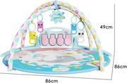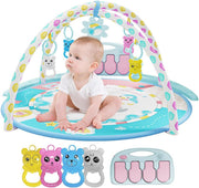 Complete Play Set for Baby's Growth Stages - Includes 1 Washable Crawling Mat(85cm in diameter), 1 piano panel, 2 x 130cm soft playpen tubes, 2 sturdy stands, and 4 captivating rattle toys. Perfect for 0-36 months, with play modes tailored for lying (0-6m), tummy time (6-12m), and sitting (12-36m).