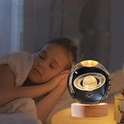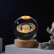EETU Crystal Glass Ball Night Light,3D Solar System Nightlight Wooden LED Display Base Stand Home Decor Birthday Gifts Decorations Lamp Funny Table Lamp Warm Light for Kids (Saturn (planet))