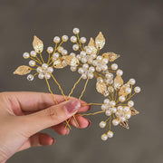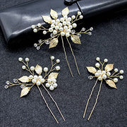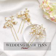 Excefore Pearl Bride Wedding Hair Pins, 3Pcs Leaf Bridal Head Piece Flower Hair Accessories for Women and Girls