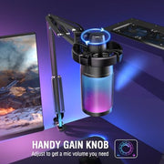 • [Cool Lighting Design] Two-tone automatic gradient RGB makes your PC windows microphone icing on the cake. With soft and coordinated light effects, more than 7 kinds of color mode, your game video or live streaming will be more rainbow eye-catching via the USB mic with boom arm. Make your channel stands out from ranking list. If you are just a game player, the rich RGB on the stream microphone for PC matching with your flowing colors computer accessories can meet the needs of more game atmosphere.