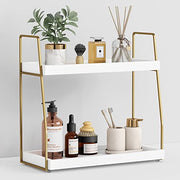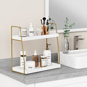 Forbena Bathroom Organizer Countertop, Counter Organizer for Bathroom Decor, Wooden Sink Shelf for Vanity Storage, Makeup Tray for Perfume Skincare Bedroom Kitchen Corner (2 Tier, White and Gold)