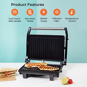 - QUICK GRILLING, COOL-TOUCH HANDLE – Instantly cooks up your favourite food with its powerful 1600W heating element and various heat settings (low medium high) From sandwiches to fish chicken pork, or steak—this grill can do it all. Helps you stay safe while you handle your grill and keeps you from experiencing painful burns and injuries.