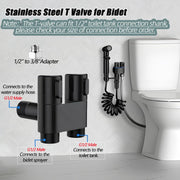 Gloserin Handheld Bidet Sprayer for Toilet,1-In-2-Out Dual Control Valve,Mini Toilet Faucet Sprayer Kit Butt Washer,Hand Shower Bidet Attachment for Washing Machine and Toilet (Black)