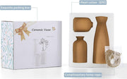 Heifgott Beige Ceramic vase Set-3 Small Flower vases for Decor,Modern Home Decor, Vases for Decor,Pampas Grass Vase,Dried Flowers Vases,Living Room,Table Shelf, Centerpieces Decoration