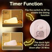 Lying Flat Duck Night Light, Cute Light Up Soft Silicone Nursery Duck Lamp with Touch Control & Rechargeable & Timer & Dimmer for Kids, Kawaii Gifts of Birthday Festival for Children Girls