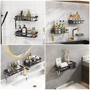INFOSUN 2PCS Bathroom Shower Shelf, No Drilling Shower Shelf for Bathroom Storage, Can be wall-mounted without holes for Bathroom, Toilet, Shower, kitchen Accessories, with 1 Soap Dishes(2Pack,Black)