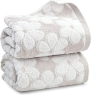 Jacquard Towels for Bathroom - Featuring a charming six-petal flower pattern with light beige brown, each bath towel is woven with care to bring a touch of nature's beauty into your bathroom oasis.