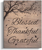 Kas Home Thankful Grateful Blessed Wall Decor Canvas Inspirational Quote Sign Farmhouse Rustic Wall Art Positive Word Hanging Decoration for Bedroom Living Room Kitchen Framed Plaque (10.6 x 13.7