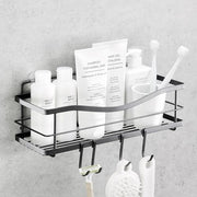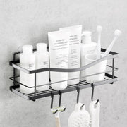 KINCMAX Shower Shelf - Self Adhesive Shower Caddy with 4 Hooks - No Drill Large Capacity Stainless Steel Rack - Aesthetic Organizer for Bathroom Wall Decor - Matte Black