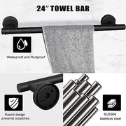 Kissun Matte Black 24 Inch Towel Racks for Bathroom Hardware Accessories Set Towel Bar Set 5 Pieces Wall Mounted Matte Black 16 Inch Towel Racks for Bathroom Hardware Accessories Set Towel Bar Set 5 Pieces Wall Mounted