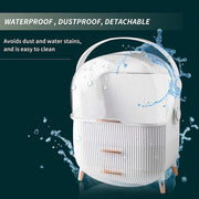 PORTABLE WITH WATER AND DUST PROTECTION - The crystal-like transparent lid keeps your cosmetics away from dust and water, avoids dust and water stains, and is easy to clean. It is suitable for the dressing table or countertop in the bathroom, bedroom, or dressing room, equipped with a hand strap, which can easily move your cosmetic space, and is also convenient to carry when traveling, especially suitable for car travel.