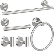 Lomeshow 5pcs Bathroom Hardware Set, Matte Black/Brushed Nickel/Brushed Gold Bathroom Hardware Set, Including 16" Hand Towel Bars, Toilet Paper Holders, Towel Rings, Robe Towel Hooks (Silvery)