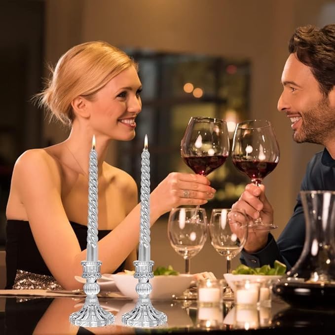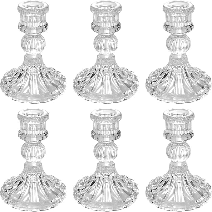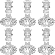 LQZHBDWZ Glass Candle Holder, Clear Taper Candle Candlestick Holder for Wedding Party Table, Spring Decor, Anniversary, Festival Decoration, Dining Room Table, Valentine's Day, Set of 6 (Transparent)
