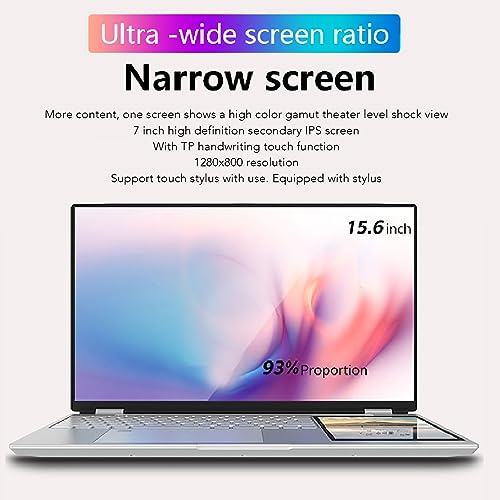 - 15.6 INCH 4 SIDE NARROW SCREEN: Double screen laptop adopts 15.6 inch four side narrow display, 1920x1080 HD image quality, color field is wider, with AI intelligent algorithm, display effect is good, 16:9 screen share ratio of 93%.