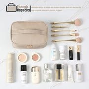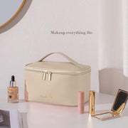 LYNSAY Makeup Bag Travel Cosmetic Bags Multifunction Organizer Storage Bag Toiletry Bag Leather Waterproof Bag for Women for Women Girls Pouch Cute (beige)