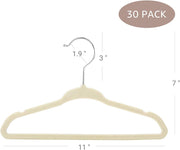 ManGotree 30 Pack 11inch Baby Clothes Hangers, Velvet Kids Toddlers Coat Hangers with Ultra Thin & Non-Slip Design (Beige)