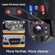 - 【20X Optical Zoom Dual 360° Viewing Angle】Solar camera with 20X Optical Zoom,allows you to clearly zoom in on distant objects(license plate number can see).Dual screen supports 355 ° horizontal and 90 ° vertical rotation, can be easily controlled through an application to capture a wider range.