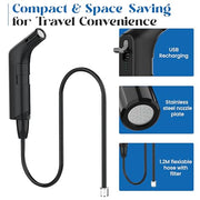 Portable Bidet for Travel � Rechargeable Shattaf with Water Tank (Black) � Compact & Hygienic Toilet Sprayer for Camping, Hiking, and On-the-Go Use Stay fresh and clean anytime, anywhere with our Portable Bidet Shattaf�the ultimate travel-friendly solution for personal hygiene. Perfect for Muslim travelers (Almusafir), campers, hikers, and busy commuters, this rechargeable bidet sprayer ensures a gentle, thorough clean without the need for toilet paper. ? Rechargeable & Long-Lasting � Built-in battery for multiple uses per charge (no messy wires or plumbing needed). ? Compact & Portable � Lightweight, fits in any bag, ideal for travel, camping, and emergencies. ? Easy-to-Fill Water Tank � Detachable 500mL (adjust if needed) tank provides ample water for a refreshing ? Adjustable Water Pressure � Gentle spray for sensitive skin or stronger flow for deep cleaning. ? Durable & Leak-Proof � High-quality ABS plastic ensures no spills in your backpack or luggage. ? Muslim-Friendly (Shattaf/Almusafir) � Perfect for Istinja, ensuring hygienic purity on the go.
