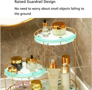 ★【Classy Look】--- Gold wire basket with removable black marbling glass tray, this cosmetic storage rack can easily give you a splash of luxury, displaying your make-up in a graceful and modern way