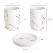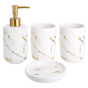 OFRANK Bathroom Accessory Set, 4 Pcs Marble Look Ceramic Countertop Accessory Set Nordic Elegant Bathroom Décor Accessories with Soap Dispenser, 2 Bathroom Tumblers, Soap Dish (White Marble)