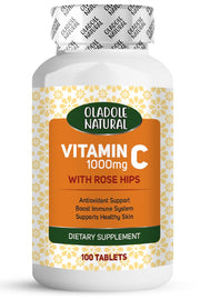 Oladole Natural 1000 mg Vitamin C Tablets With Rose Hips, 100 Tablets