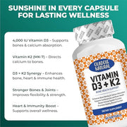 Oladole Natural Vitamin D3 4000 IU + K2 Supplement – 60 Softgels Supports Bone Health, Immunity, Healthy Muscle Function, and Bone Density | Gluten-Free, Non-GMO