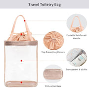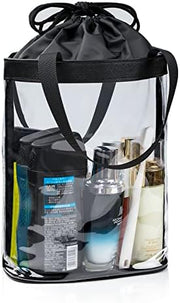 Premium Material: This clear makeup bag is made of improved thickened Eco-Friendly transparent PVC material,which is more sturdy, softer and reusable and make you find items easier. Sturdy drawstring closure on top to keep all your belongings safe.