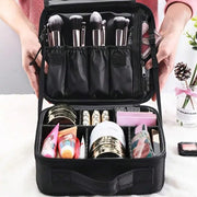 Portable Travel Makeup Bag | Adjustable Cosmetic Case Organizer for Brushes, Toiletries, Jewelry & Accessories – Black