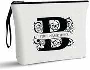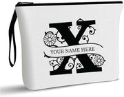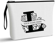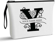 Customizable Initial Monogram: Personalized makeup pouch featuring your initial monogram. Add a touch of elegance and individuality to your beauty routine or gift it to a friend.