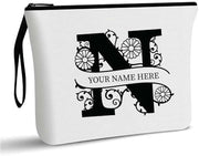 PRINTSHOP4ME Personalized Makeup Bag - Initial Monogram Cosmetic Pouch - Customizable Your Name - Monogrammed Makeup Pouch - Perfect for Travel Organizer - Cosmetic Bag for Women (N)