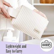 Unique Design - Makeup bag with wide elastic handle and sturdy zipper, portable and easy to carry. Can be used as a make-up organizer, toiletry wash bag, pencil case, and daily handbag. Suitable for an outdoor, business trip, camping, travel, gym room, indoor, house-held storage.