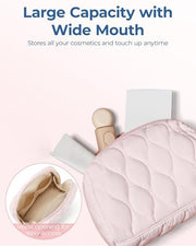 Puffy Padded Makeup Bag for Women - Travel Cosmetic Organizer Case with Wide-Open Design, Spacious Capacity, and Easy-Clean Pockets, Perfect for Toiletries, Brushes, and Travel Essentials, Pink