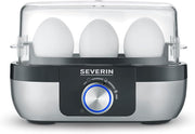 SEVERIN Egg cooker for 3 eggs with electronic control of cooking time, incl. measuring cup with egg pastes, egg cooker for ideal hardness, stainless steel brushed/black, 300 W, EK 3163