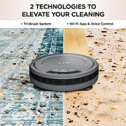The Shark ION Robot vacuum is designed with a Tri-Brush System, combining side brushes, channel brushes, and a multi-surface brushroll to handle debris on carpets and hard floors. Use the SharkClean app or voice control with Alexa or Google Assistant to start cleaning from anywhere.