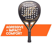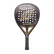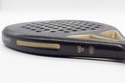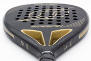 The Golden pro 12K is a padel racket from Side Spin's new 2022 collection designed for players looking for a high level of play. With its diamond shape, the sweet spot is higher than a teardrop racket (Golden). Therefore, together with the 12K carbon, which gives a feeling of stiffness and power when hitting the ball. It is the most powerful racket in the Golden series. The Golden pro has a hard black Eva which means that the ball will spend less time in contact with the surface, achieving a very high level of ball speed without losing control. It has a Sandy finish for extra ball grip.